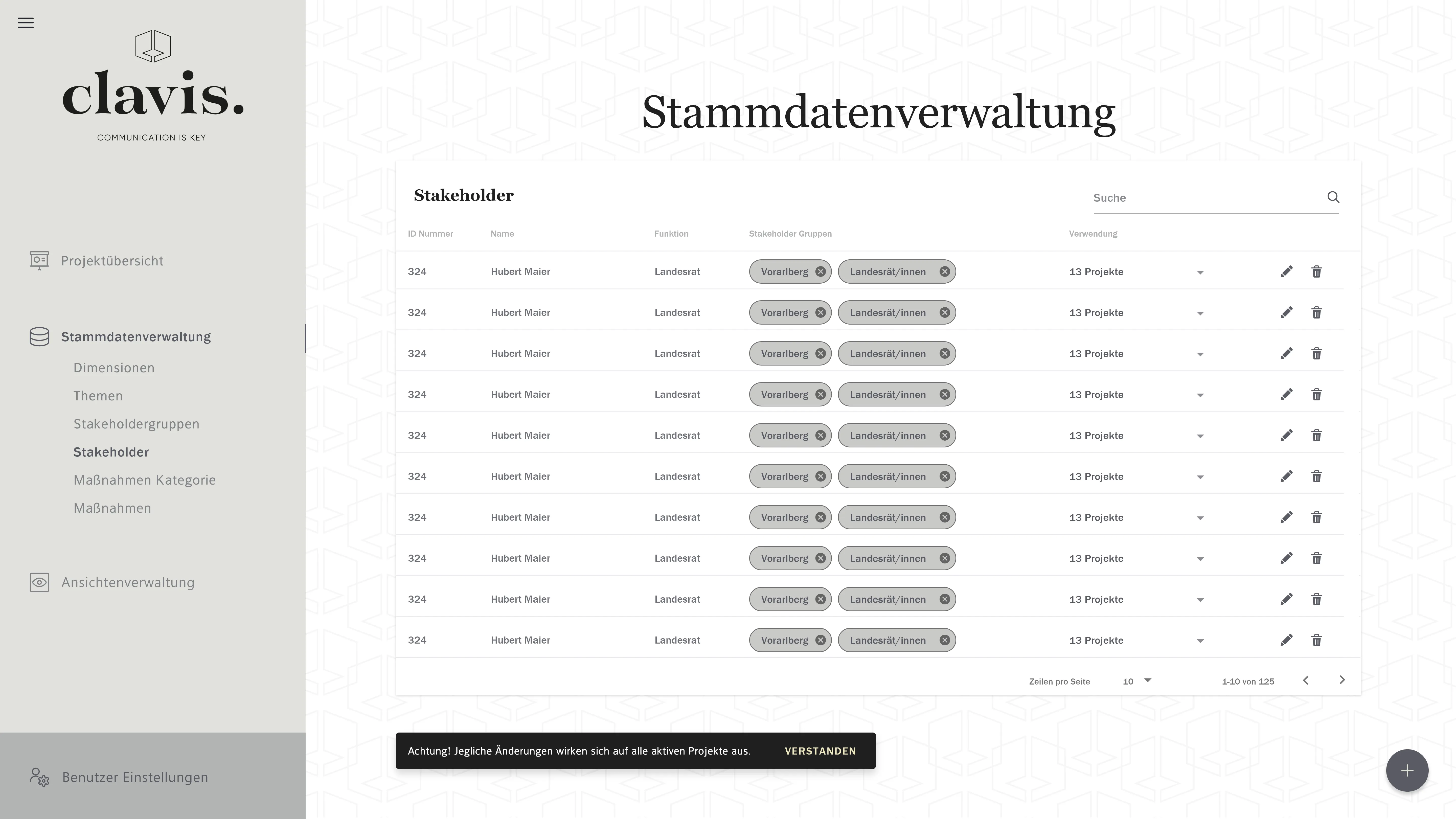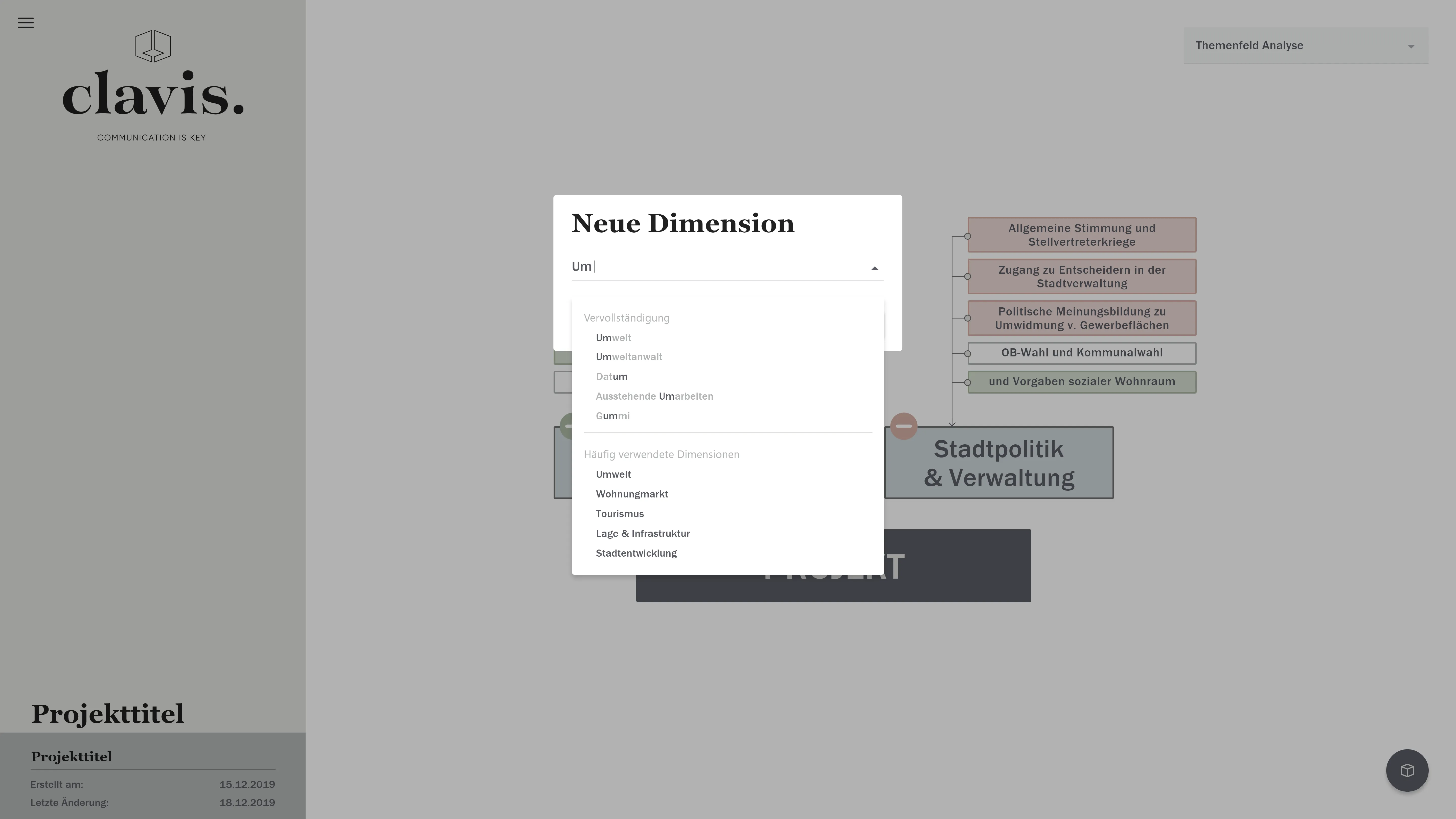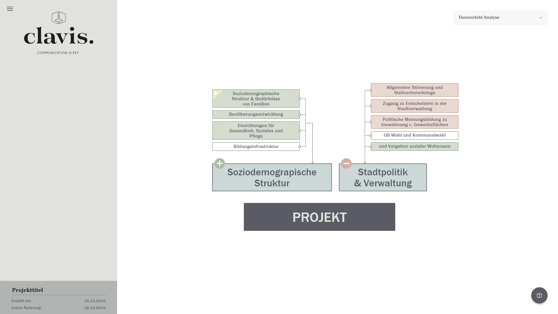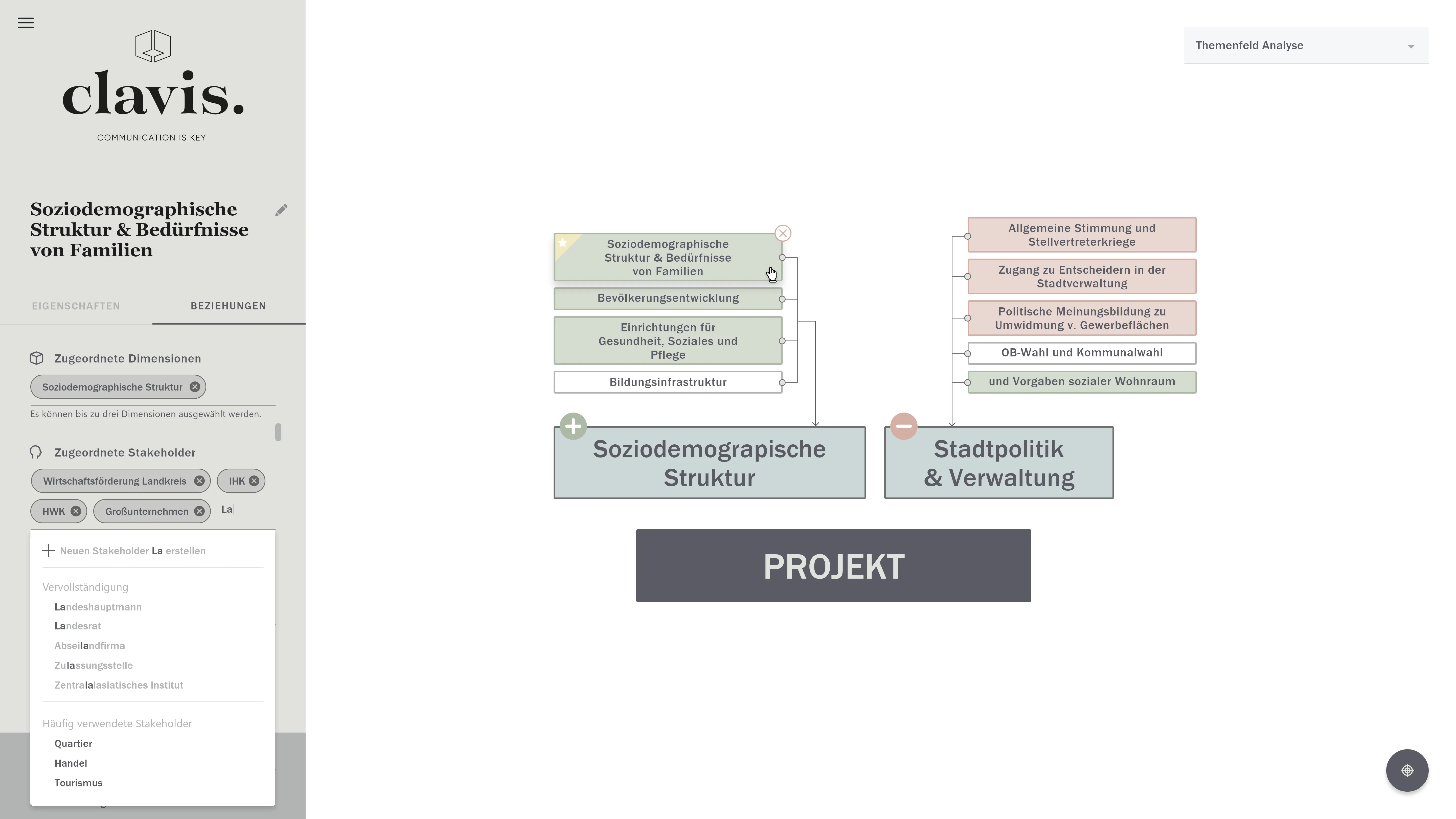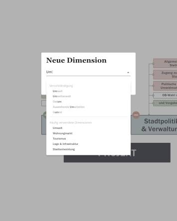 Komplette Backoffice Webanwendung zum Visualisieren von Verknüpfungen basierend auf einstellbaren Parametern und Themenfeldern.